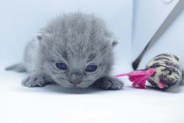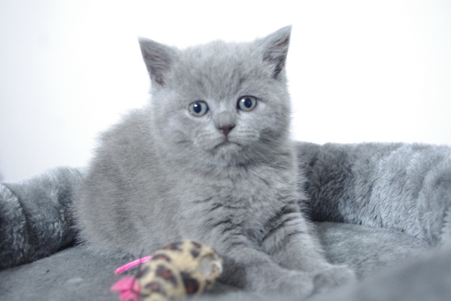| Kocica jest pełna gracji, dobrych manier i uroku osobistego. Nawet jak się bawi, to czyni to tak jak przystało małej damie. Jej oczka są nadal w odcieniu koloru niebieskiego, co dowodzi jaki z niej jeszcze jest niezaradny osesek. | |||