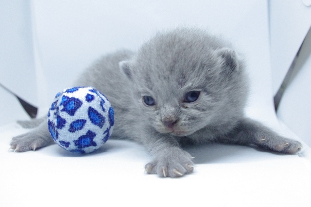 | Upssarin to mały wesołek, który już pokazuje, jak bardzo uwielbia zabawę. Jeszcze nie nauczył się chodzić, a już łapkami próbuje zaczepiać ogonki swojego brata i siostry. Mamę zaś wciąż usiłuje złapać za jej wibrysy. A kiedy robiliśmy zdjęcia, to najbardziej spodobała mu się niebieska piłeczka, która dotknięta łapą zaczyna się toczyć. Ależ to było dla Upssarina ekscytujące. | |||