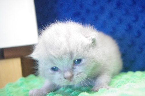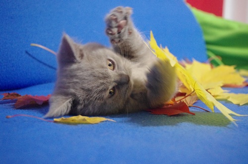 materiałowe legowisko, i nieźle pogryzł styropianową piłeczkę. Kociaki mają wstawioną miseczkę z suchą bardzo drobniutką karmą i myślę, że dzięki tym niesfornym zębom, Cappuccino za chwilę zacznie ją chrupać.