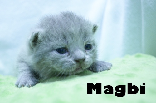 Magbi jest wesołą koteczką, wszędobylską i lubiącą zabawę. Jest taka bardzo szczera w swoim zachowaniu. Jeśli się bawię to tak jak chcę i czym chcę. Właśnie upodobała sobie biały pompon i nie pozwala go ruszyć rodzeństwu. To jest jej zabawka