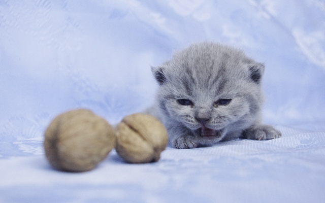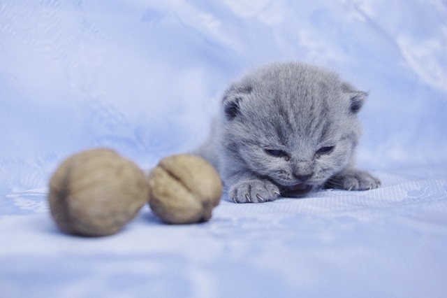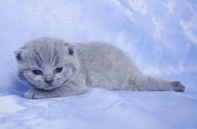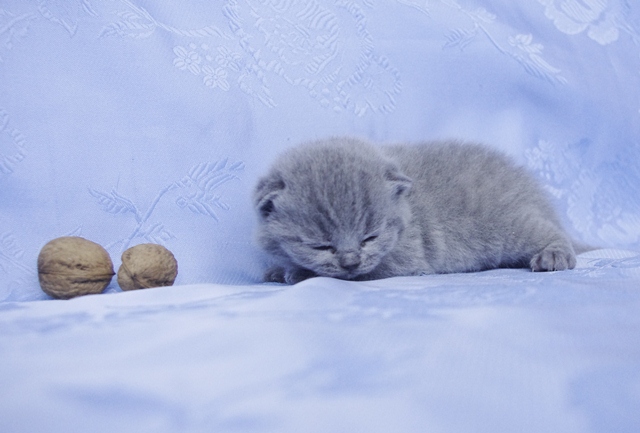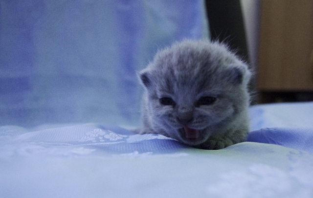 | Na tym etapie mało można powiedzieć o jej charakterze, gdyż na razie koteczka dużo śpi przy mamusi i rodzeństwie. Ma jasne futerko i właśnie niedawno otworzyła oczy- są ogromne. Elmirka na widok świata, zareagowała głośnym "miau". Właściwie gdy nie śpi, to cały czas miauczy. Jak prawdziwej kobietce, buzia jej się nie zamyka. | |||