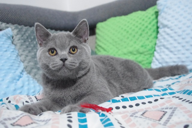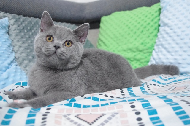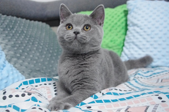 | GRYFIK SŁONECZKO*PL Kocur Brytyjski Niebieski Krótkowłosy (BRI A) Urodzony 1. marzec 2022 Możliwy odbiór od 26 maja 2022r. Zdjęcia z dn. 22.07.2022r. 4,5 miesiąca życia |