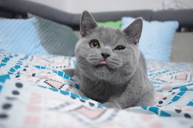 Gryfik to jedyny niebieski kocurek w miocie G.