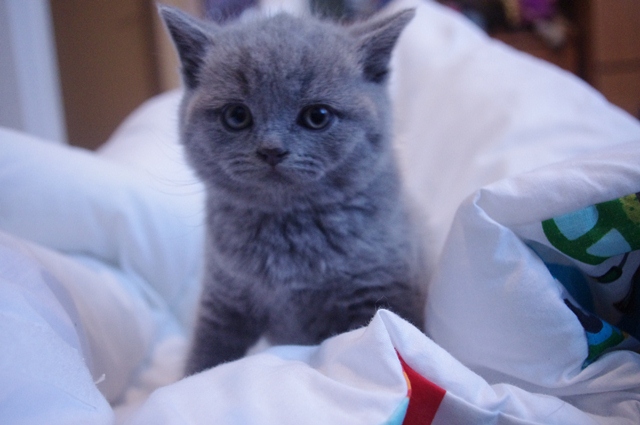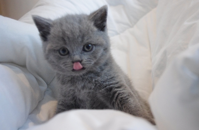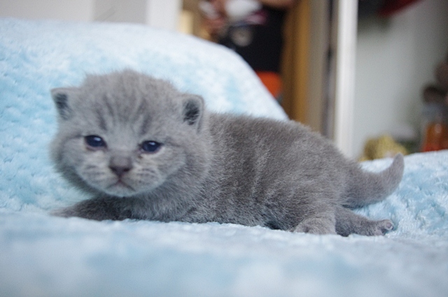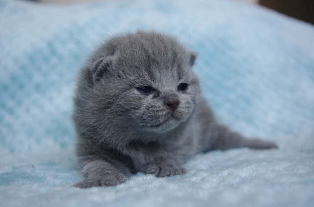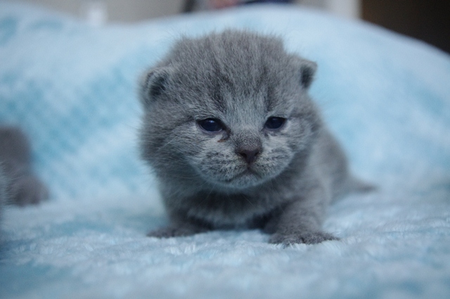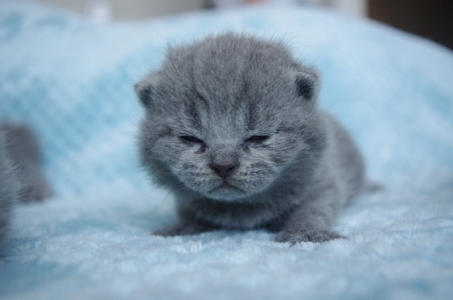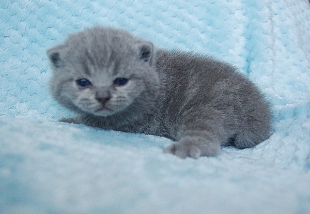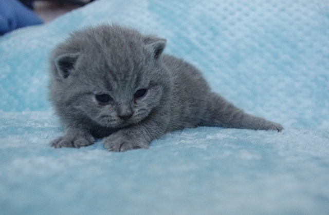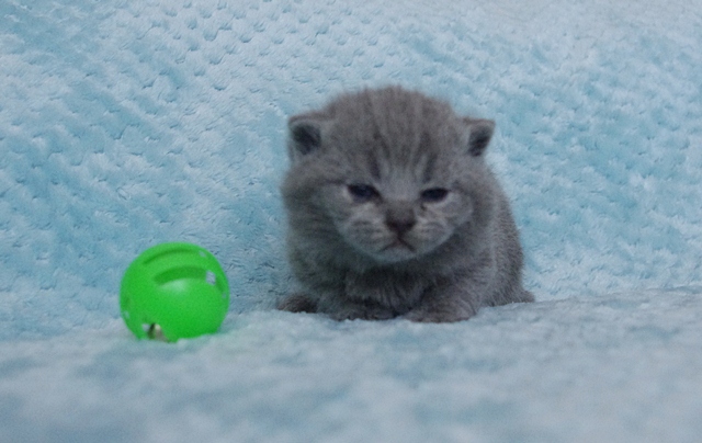 Kocurek dopiero co otworzył oczka, a na razie one wygldają jakby miał szkła kontaktowe. Codziennie jednak rośnie i rozwija swoje zmysły. Karmiony do syta przez swoją kochaną mamusię Kobrę, niedługo zmieni się w energiczną kulkę biegającą