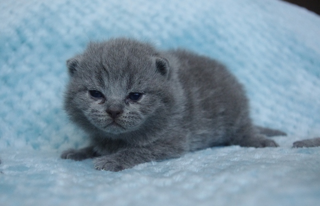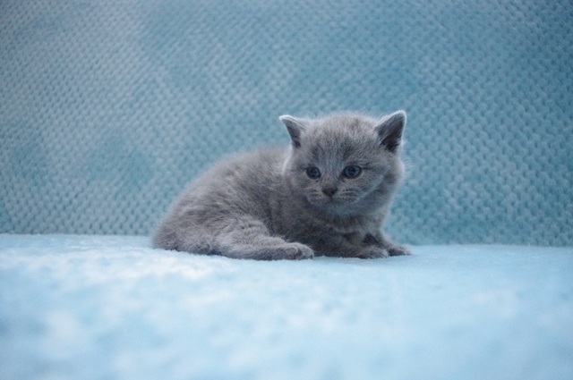 Kocurek HIACYNT jest słodkim maluszkiem. Ma ciemne futerko z prążkami, które są tylko na jego miękkim podszerstku. Gdy kocurek dorośnie jego futerko prążki przykryje gruby lśniący niebieski włos. Będzie miał ciemne jednolite umaszczenie.
