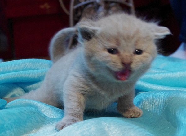Jedyny liliowy kociak w tym miocie. Jego imię wzięło się stąd, że wspina się po swoim rodzeństwie jakby po najwyższych górach i dosięga do najlepszych (jego zdaniem)cycusiów. |
