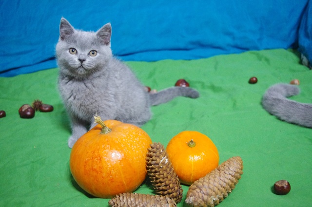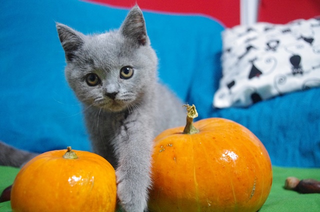 | U nas w mieszkanku zawitała już jesień, a kociaki poznają dynie, kasztany, żołędzie i szyszki (10tygodni) |