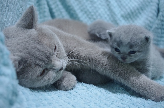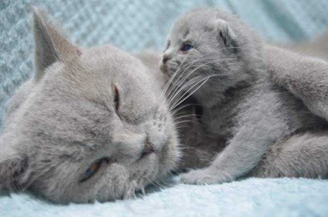 | Nasza Miaucząca, gdyż tak nazywamy ZUMBĘ, oraz Johnny bardzo się kochają i uwielbiają swoje towarzystwo. Ich randkowanie to nie tylko miłość, ale także dużo dużo wspólnej zabawy. Z takiej wielkiej zażyłości, zawsze rodzą się cudowne kociaki. Teraz mamy dwóch dżentelmenów i jedną księżniczkę. Wszystkie niebieściutkie i okrąglutkie w tatę, ale z dużymi oczami po mamie. |