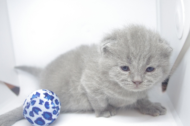 Rufik jest niesamowicie silny jak na swoje dwa tygodnie. Wspaniale już podnosi głowę do góry. Próbuje także unieść brzuszek do góry i zrobić krok, ale na razie tylko wymachuje tylnymi kończynami niczym płetwami, a brzuszek cały czas leży na ziemi. Jego futerko jest granatowe, niczym wieczorne niebo. | |||