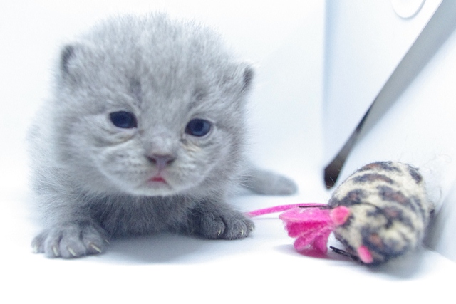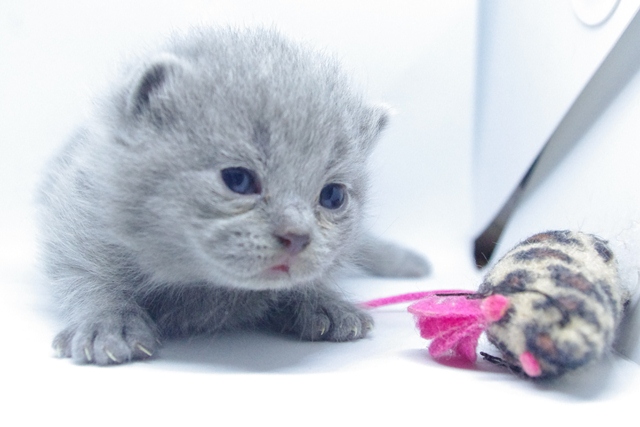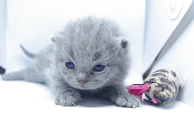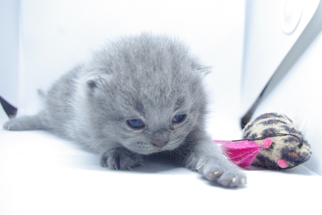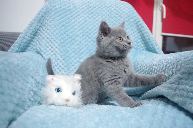 | Kocica jest pełna gracji, dobrych manier i uroku osobistego. Nawet jak się bawi, to czyni to tak jak przystało małej damie. Jej oczka są nadal w odcieniu koloru niebieskiego, co dowodzi jaki z niej jeszcze jest niezaradny osesek. | |||
