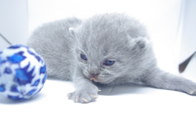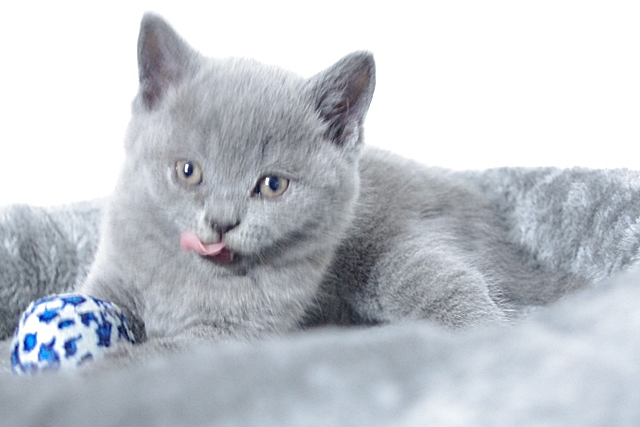 | Upssarin to mały wesołek, który już pokazuje, jak bardzo uwielbia zabawę. Jeszcze nie nauczył się chodzić, a już łapkami próbuje zaczepiać ogonki swojego brata i siostry. Mamę zaś wciąż usiłuje złapać za jej wibrysy. A kiedy robiliśmy zdjęcia, to najbardziej spodobała mu się niebieska piłeczka, która dotknięta łapą zaczyna się toczyć. Ależ to było dla Upssarina ekscytujące. | |||