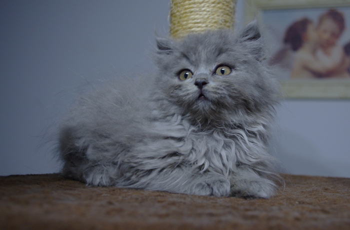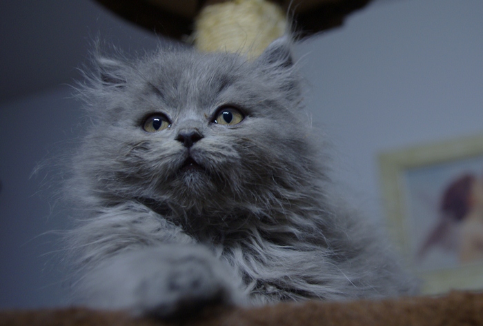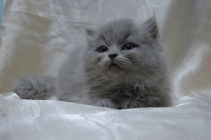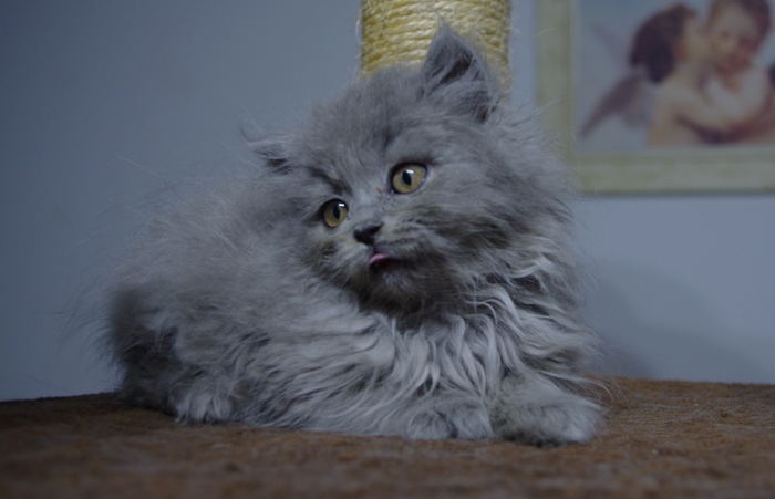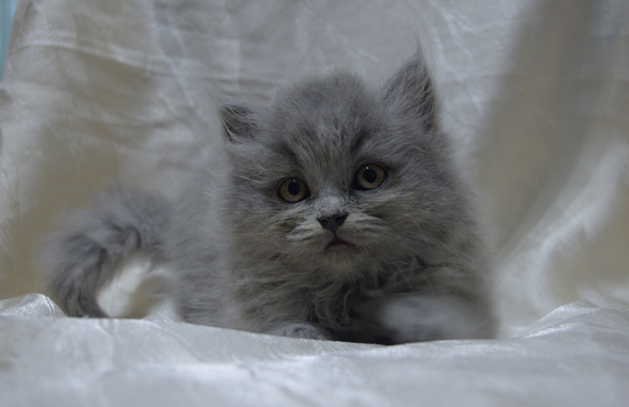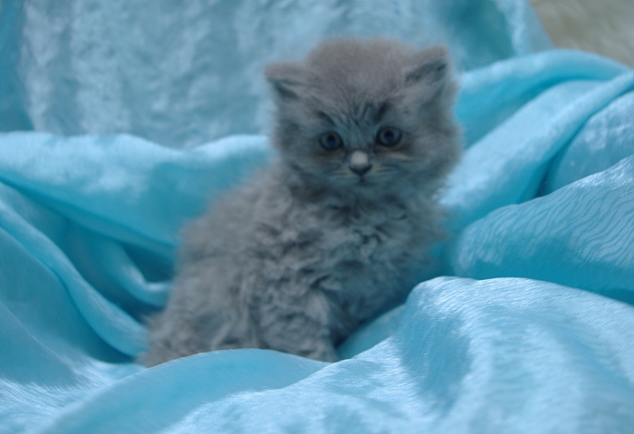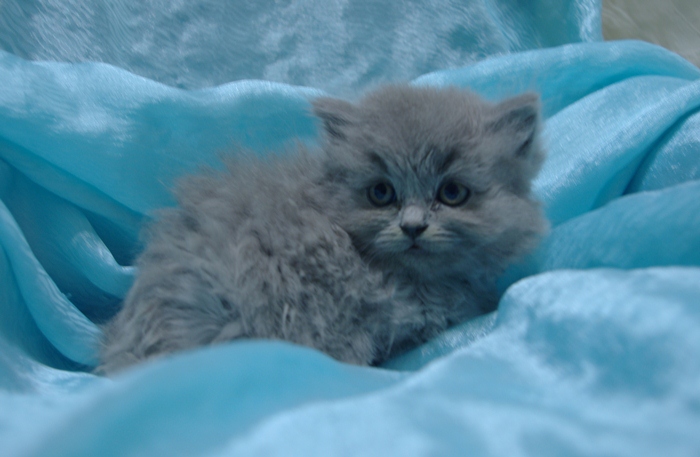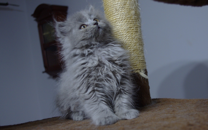 Wasabi to bardzo pozytywnie nastawiony kocurek. Ma opiękne jasne futro z długim włosem.