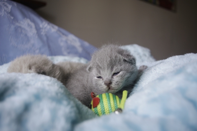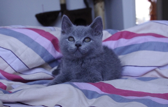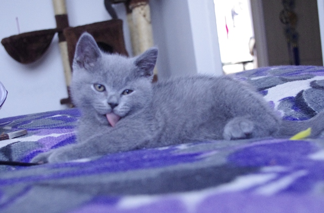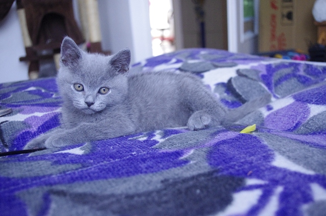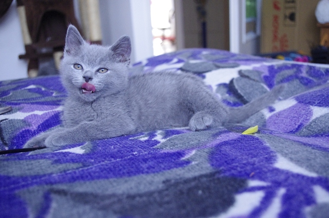 | Kociak robi wrażenie swoim szorstkim (odpowiednim dla tej rasy) futrem. Lubi spać na rodzeństwie. Kiedy więc wszyscy zasną przed nim, on używa swoich liliowych sióstr i liliowego brata jako materaca. Widocznie tak jest mu wygodniej. | |||