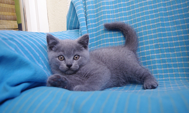 | Kocurek jest silny. Z łatwością unosi głowę do góry. Ma śliczna okrągłą głowę i pyszczek stworzony do "buziaczkowania". | |||