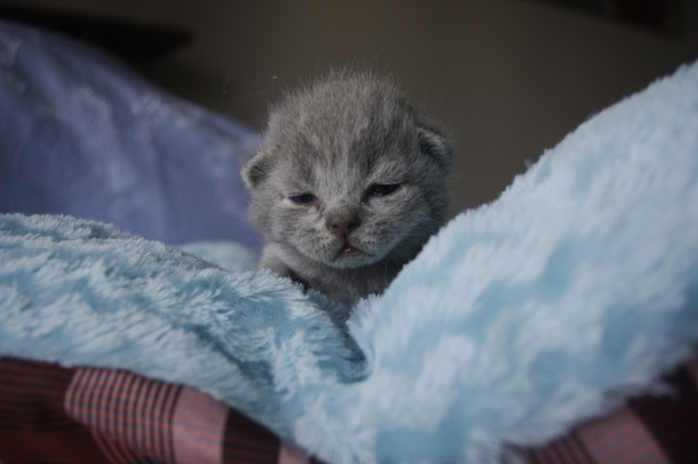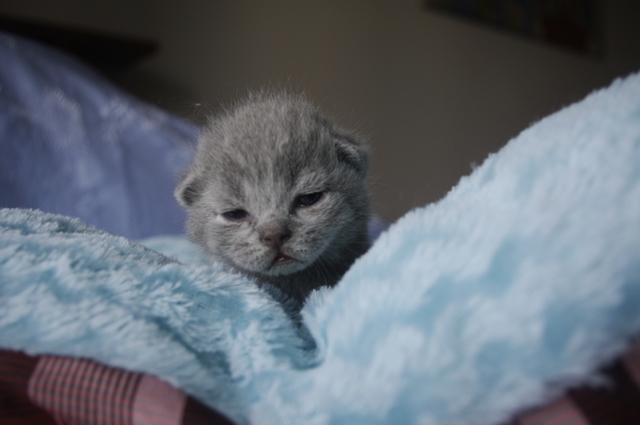 | Zoltan jest odważnym kotkiem, który zawsze ma jakiś plan do zrealizowania. Jak się już naje i wyśpi, to nie potrafi usiedzieć w miejscu. Na razie kocia rodzinka mieszka w kartonie, a on już poznał wszystkie jego kątki. Interesuje się już tym, co się dzieje poza kocim kartonem. Nie chciał uczestniczyć w sesji fotograficznej. Wolał swoim niepewnym krokiem, wyruszyć na wędrówkę. Na razie jego chodzenie, to tylko kilka kroków, mała wywrotka i od początku to samo. | |||