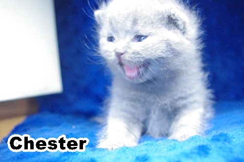 Kocurek Chester jest najmłodszy w miocie i tak właśnie się zachowuje - jak mały kochany braciszek. Ma jednak duży apetyt i często podjada miedzy posiłkiem porannym a wieczornym. A po jedzonku, zawsze się intensywnie oblizuje.