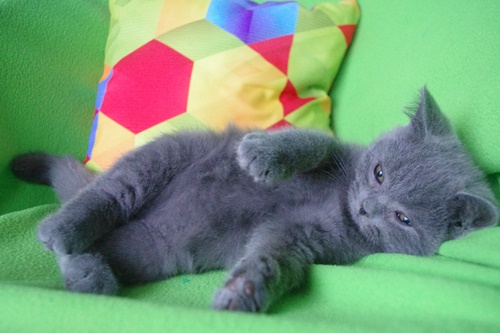 Chester to taki luzak. Niczym się nie przejmuje i widać, że po prostu jest mu w życiu dobrze. Zaczyna poznawać świat, czyli jak to bywa u kociąt: mniej śpi i zaczął się bawić lisim ogonem na sprężynce.