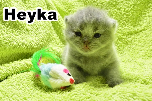 Gdy koteczkę Heykę wyjmie się z kociego posłanka i postawi na podłodze, to ona zachowuje się jak piękna pluszowa nakręcona zabawka. Pięknie chodzi, jest bardzo ruchliwa i nie można jej zatrzymać. Ma w sobie wiele energii i chęci do poznawania wszystkiego